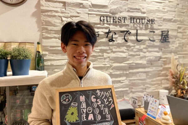 神戸なでしこ屋で働きたいとおもったきっかけは外国から来られた観光客の方と関わることができる仕事をしてみたかったからです。旅行に行った時に、ゲストハウスを利用することがあり、ずっと気になっていました。二年後に留学する予定があり、現在英語を猛勉強中です!毎日のように英語で接客する機会があり、また外国の方と話す中で文化の違いや日本の文化についてなど新しい発見があるので、とても楽しいです。これからお客さんに喜んでもらえるフロントスタッフになれるように頑張ります。よろしくお願いします!