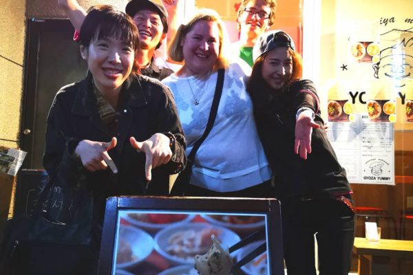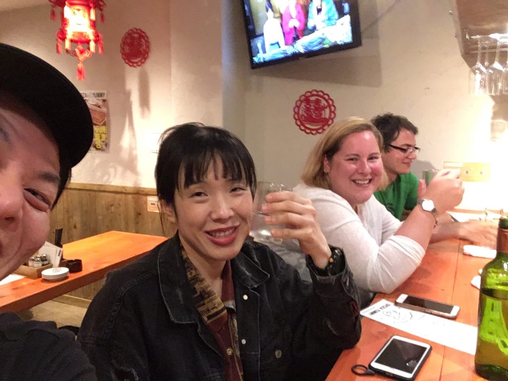 「元町の夜は人混みがなくて気持ち良いね~」とイギリスのサラさん、ほろ酔い気分でトークしながら、みんなで2件目ヤミーさんへ