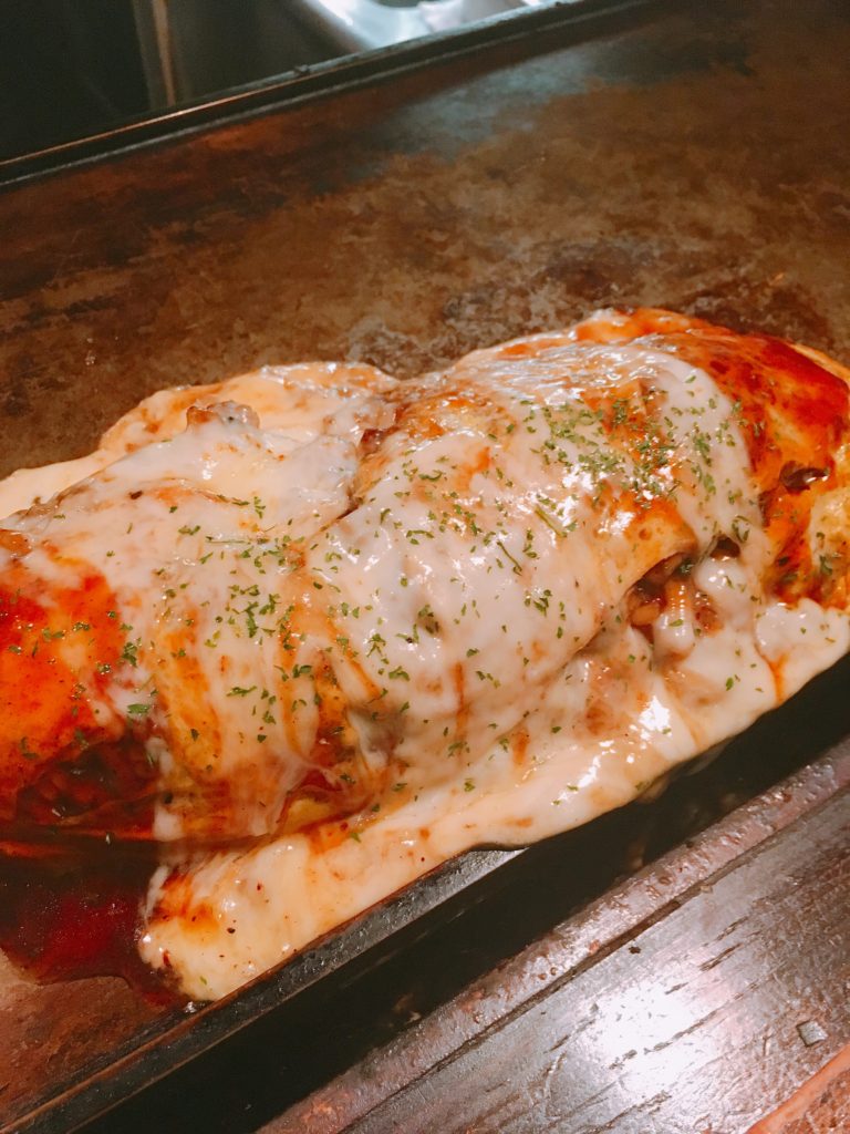 裏メニュー。卵とチーズでくるんだオムそば飯。絶品。